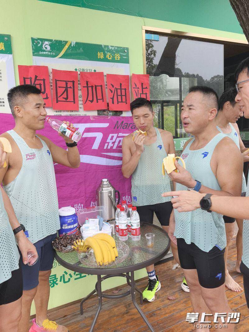 记者在现场看到,“跑团加油站”不仅备有充足的热水,供跑者运动后解渴,还贴心地配备了创可贴、消毒棉片、藿香正气水等应急药品,以应对跑步过程中可能发生的擦伤或中暑等情况,为跑友们的安全锻炼保驾护航。当然,作为“能量补给站”,“跑团加油站”里的水果也必不可少。“矿泉水和药品等由跑步的市民自发提供,绿心谷森林营地则提供了地方。”唐蕾蕾说,工作人员和跑友甚至轮流在前一天夜里烧好开水,将热水灌入保温瓶带到“跑团加油站”,确保大家随时能喝到温度适宜的饮用水。举报/反馈